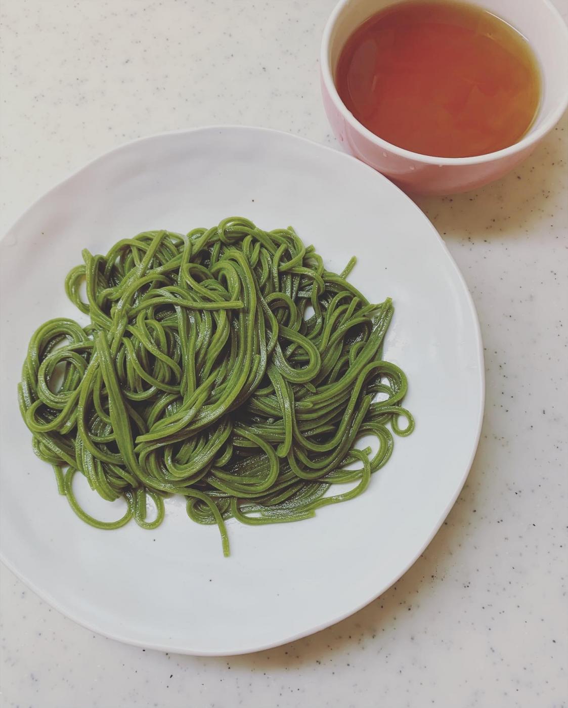 茹で終わるとツヤのあるきれいな緑色のうどんが出来上がりました♬ つるっとしていて、野菜の風味も感じられて、めんつゆもうどんとよく合っておいしくいただきました。野菜の風味といっても青臭い感じではなく自然な優しい風味なので、お子様にもオススメできます。