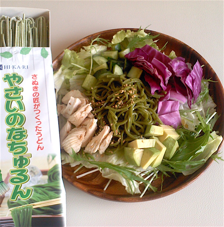 ちゅるるんと涼しげでしょ。 茶そばじゃなくて野菜の讃岐うどんです。気に入った! Saiho Agrifactor...