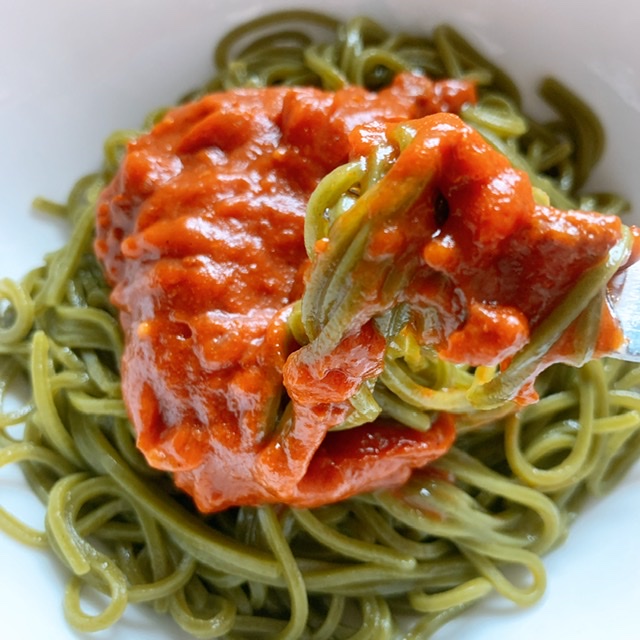 香川県のオリジナルの野菜の食べて菜が練り込まれています。