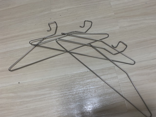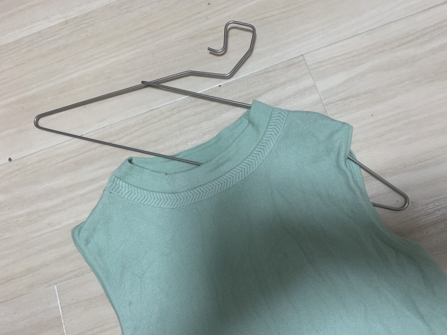 肩までかけた状態にし立った状態のハンガーをそのまま下げ降ろすだけ