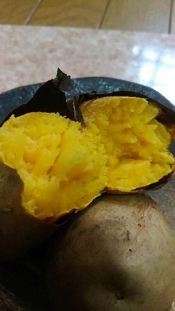 そしていざ実食????割ると蜜?らしきものがあふれてきます!断面が黄色い!✨普通のさつまいもより糖度が高くまるでスイートポテトを食べているかのようにおいしいです(^q^)✨焼きたてよりやや冷めてからのほうが、より甘さや旨味を感じられると思いました!
