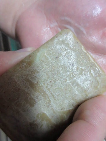 先ずは包装を解いてみました。彫刻の施された石鹸のようです。内容量も100gと、程よいボリューム感です。匂いについてはハーブ系だと思われます。