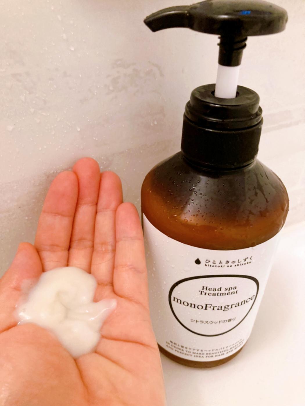 こちらは白っぽい色のトロッとしたトリートメントで、こちらもシャンプー同様シトラスウッドの木の香りがします✨