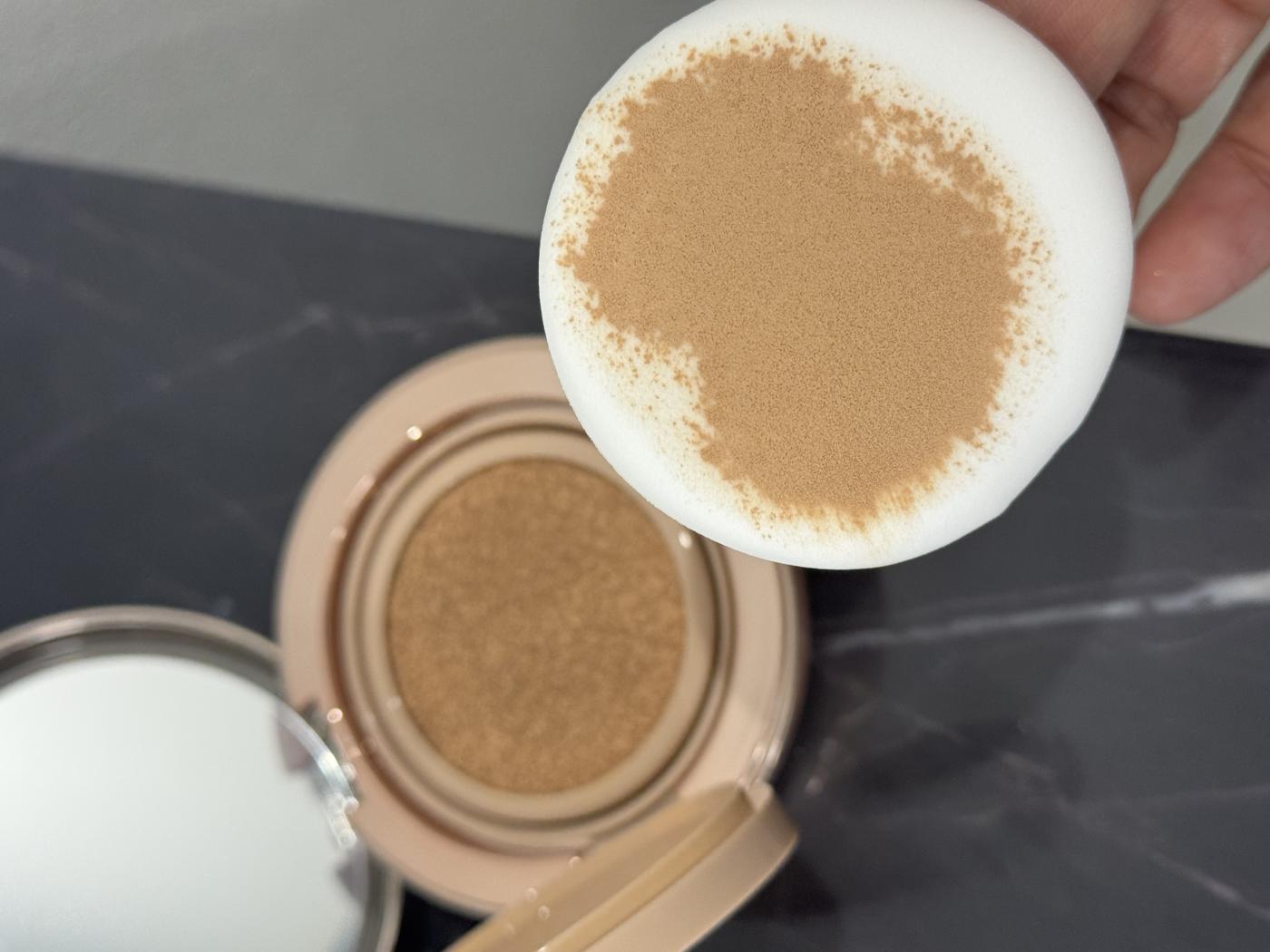 パフにとったときのムラが少なく、肌への伸びがとてもなめらかさでテクニックいらずで均一に塗れるから、忙しい朝にもぴったりだし、メイク初心者なみの私にもぴったり。