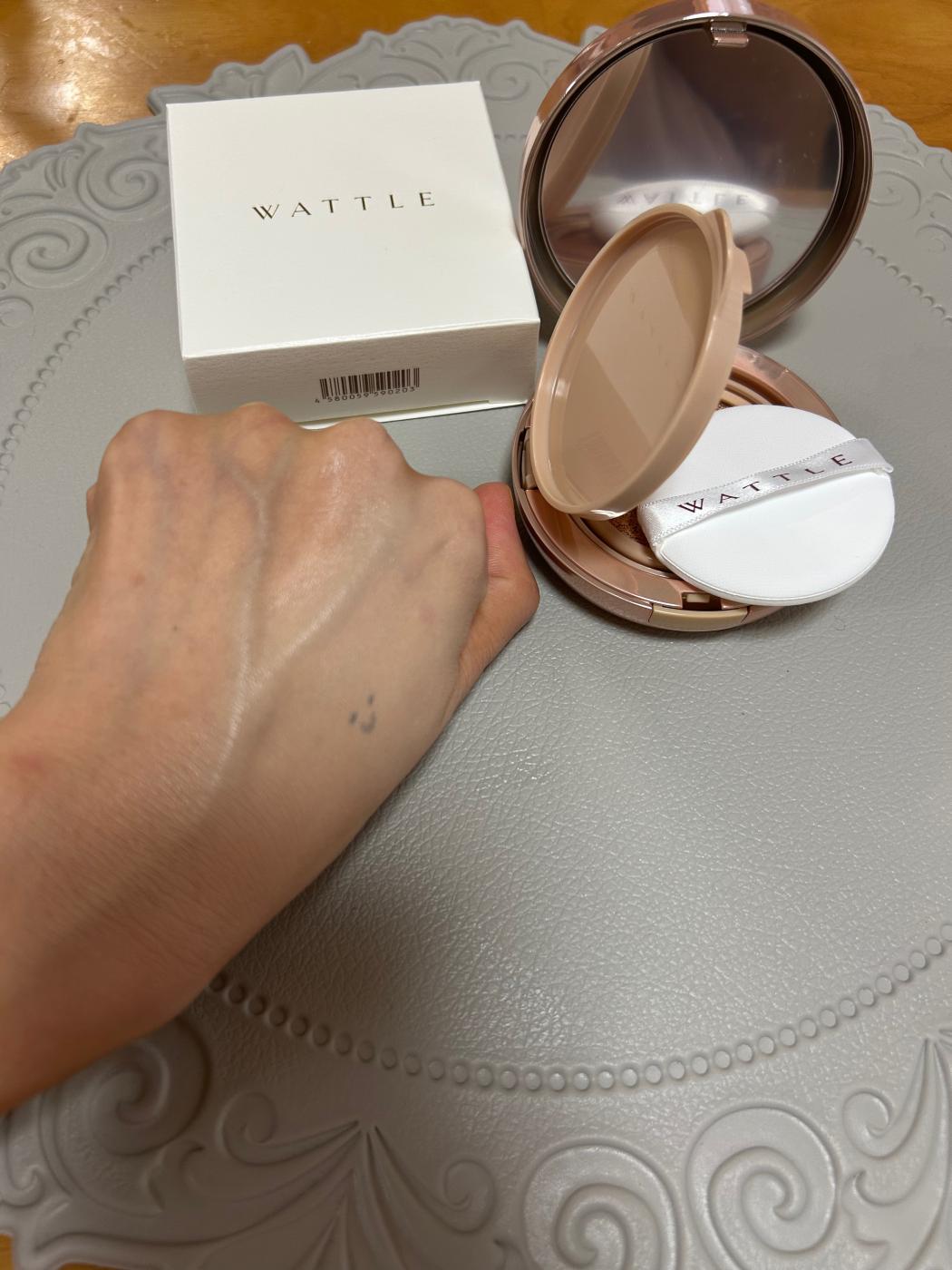 WATTLEクッションファンデーションはこれ1つで6役(美容エッセンス、メイクベース、コントロールカラー、コンシーラー、ファンデーション、UVケア)を叶える、ハイカバーのクッションタイプのファンデーションでしっかりカバーすしてくれて、ツヤ肌になれて嬉しかったです!