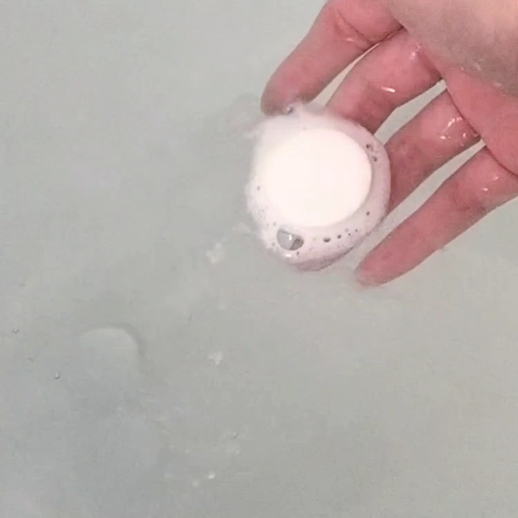 タブレットは約10分かけてゆっくりと溶ける仕様とのことで、湯船に入れると細かい炭酸泡がじっくりと出てきます。