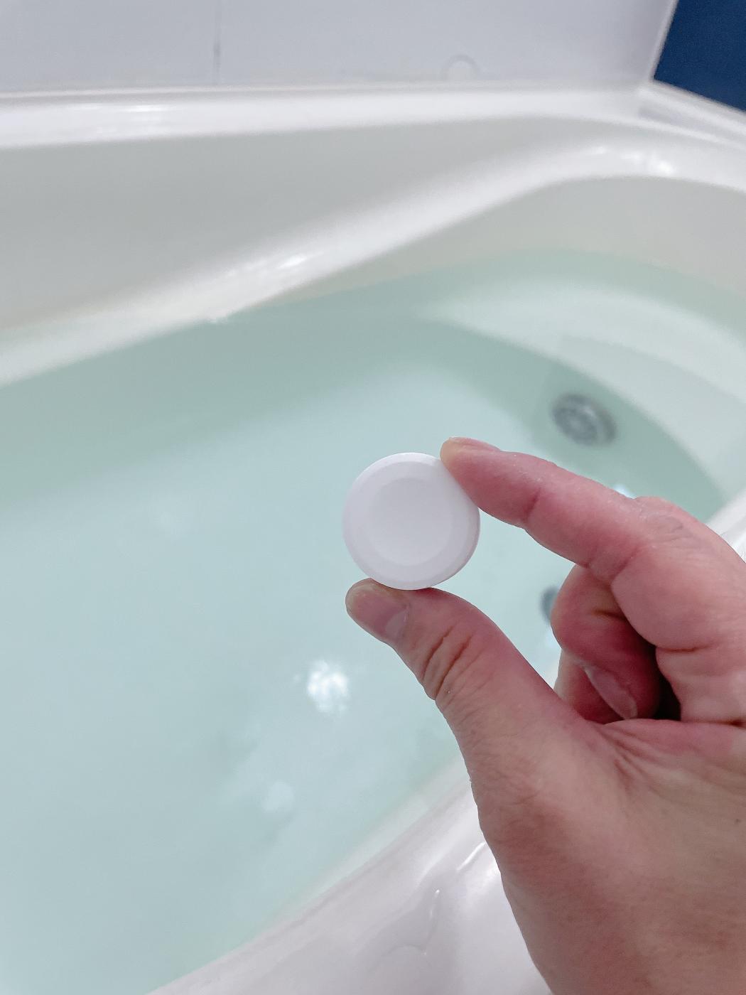 お風呂のお湯180Lを目安に錠剤を3錠入れます。