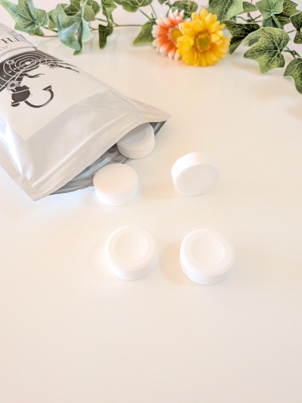 使い方はとても手軽で、お湯に真っ白なタブレットを3錠入れるだけ。