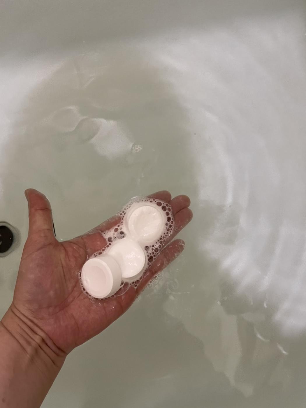 重炭酸の入浴剤。タブレットがゆっくりと溶けていきます。