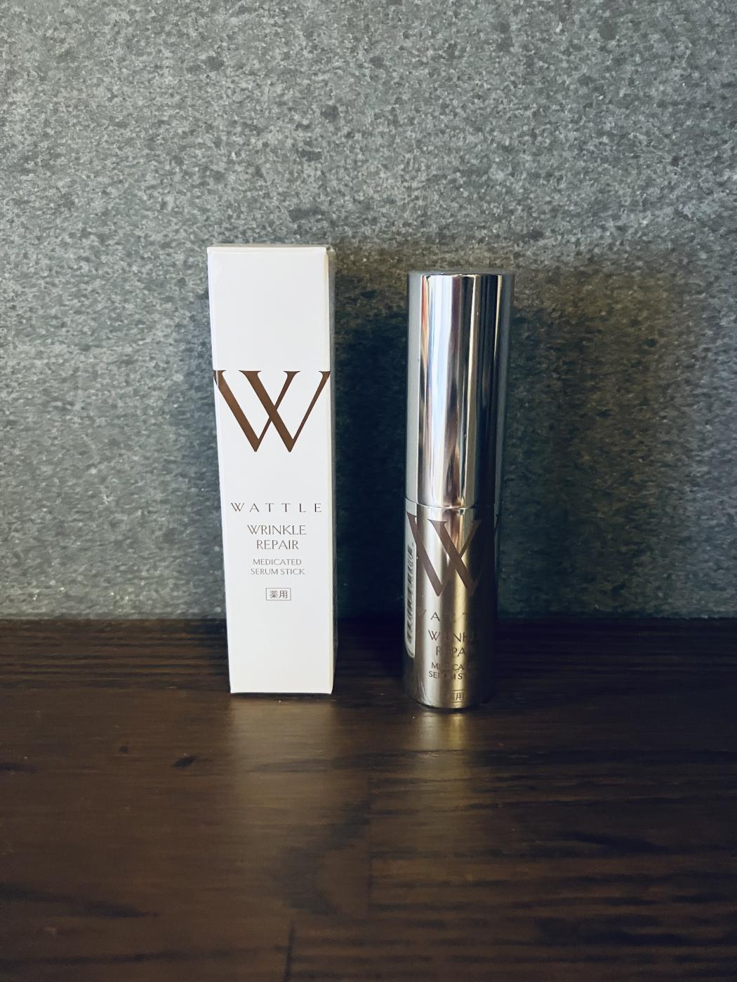 WATTLE薬用リンクルリペア美容液スティックを使ってみました。 手のひらサイズのリップ型の容器の美容...
