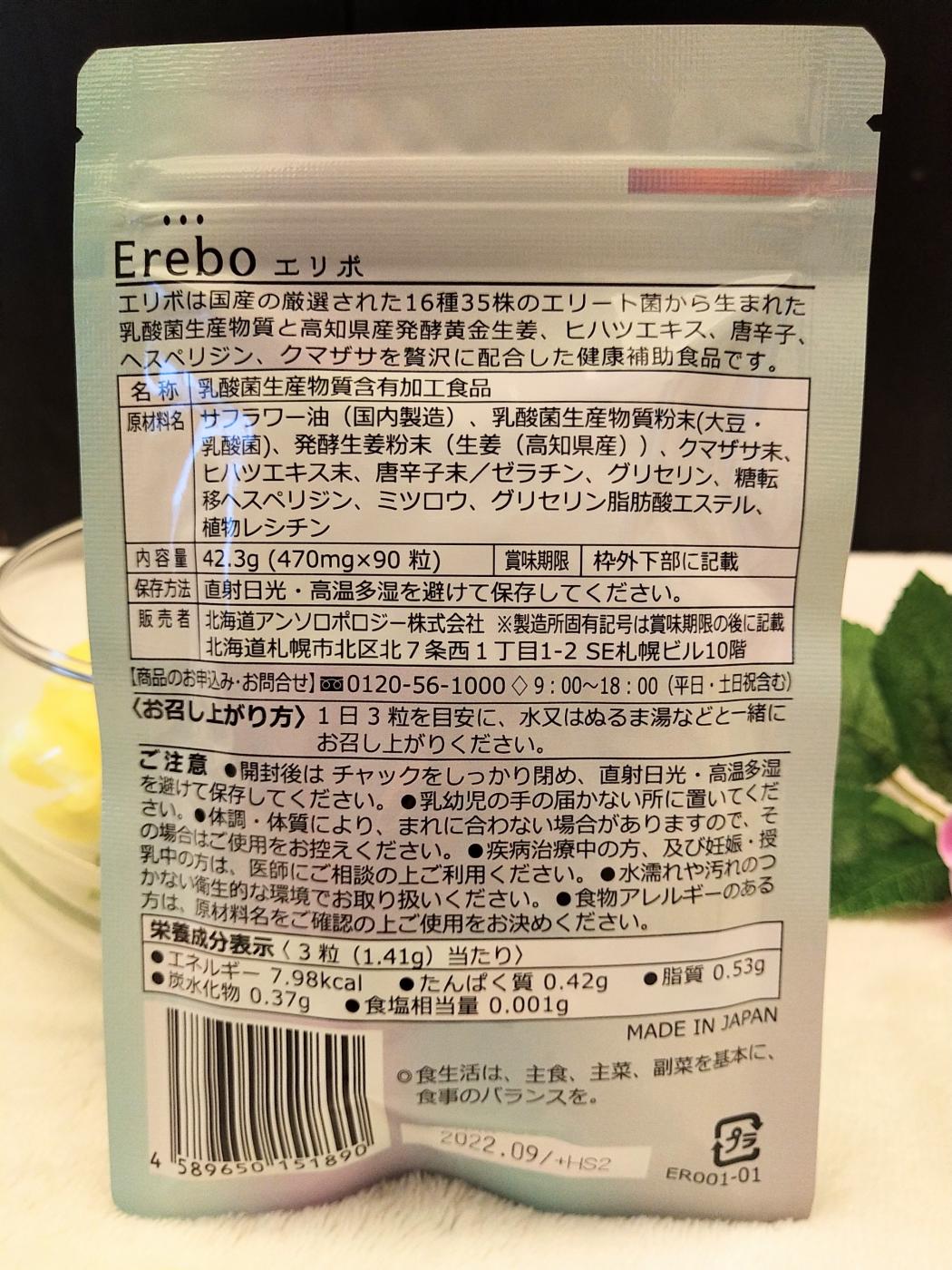 エリボのメリットとしては、生きたままの乳酸菌生産物質を腸に届け、サプリメントの中には短鎖脂肪酸を始めとする352種類もの栄養成分が摂れること。