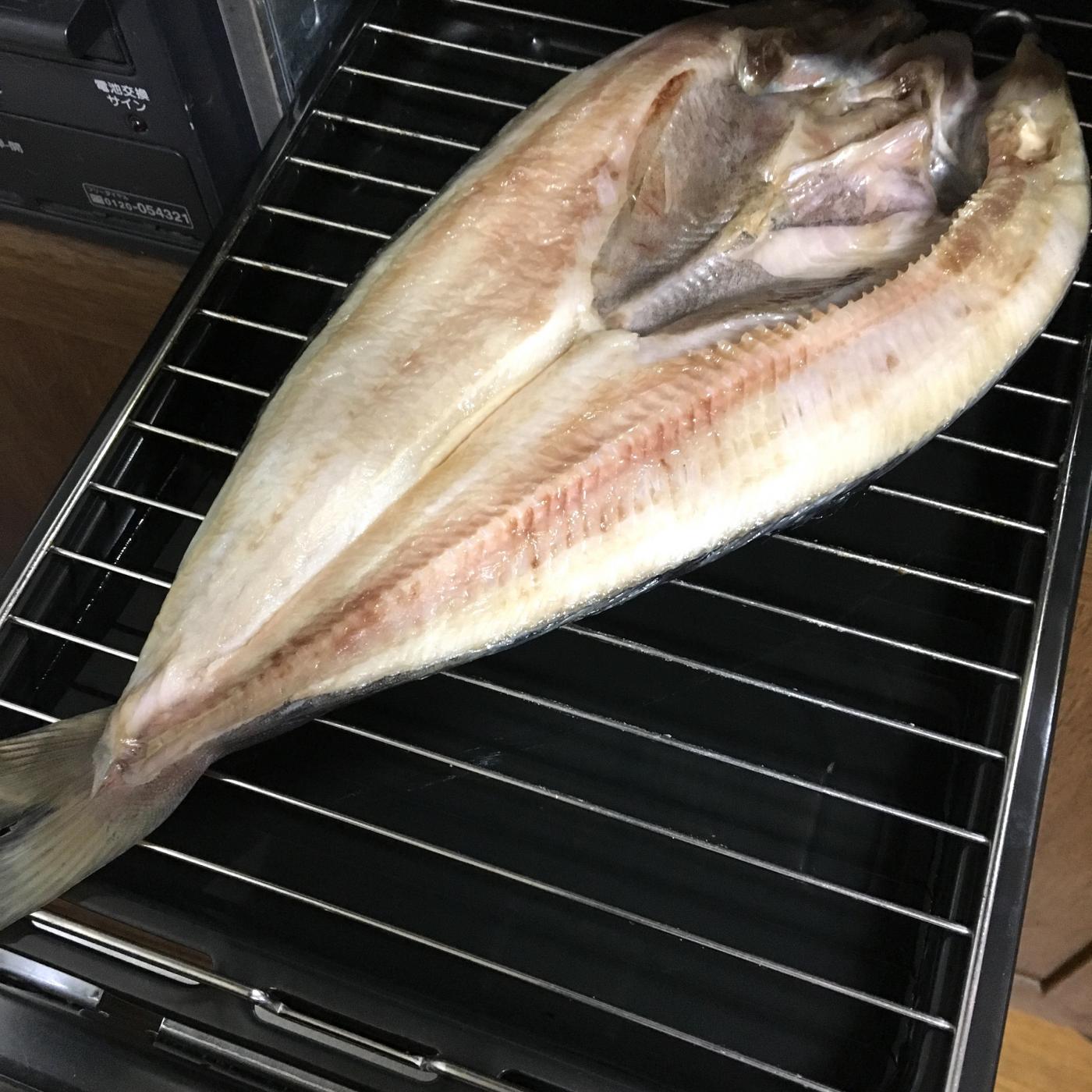 特大サイズ30センチのほっけ、少し斜めにして入れるとグリルにギリギリ入りました。