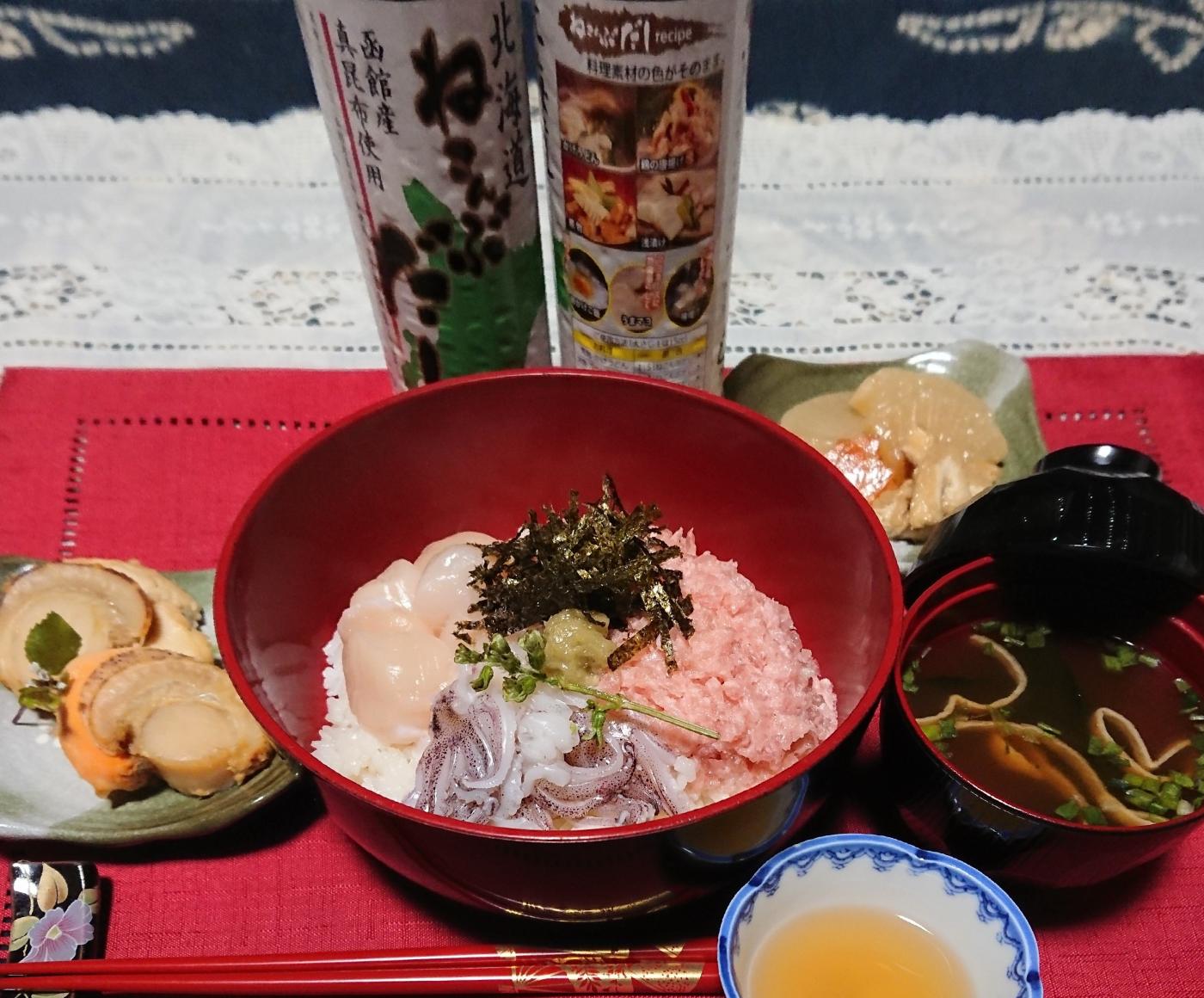 少しだしを水で、割りましたが、ホタテは、なんとなく、美味しいだろうけど、マグロは、合うのかな?と思ってましたが、だしで、旨みまし、とても美味しい?これが、合うんだー!と、なにより、驚きました❗