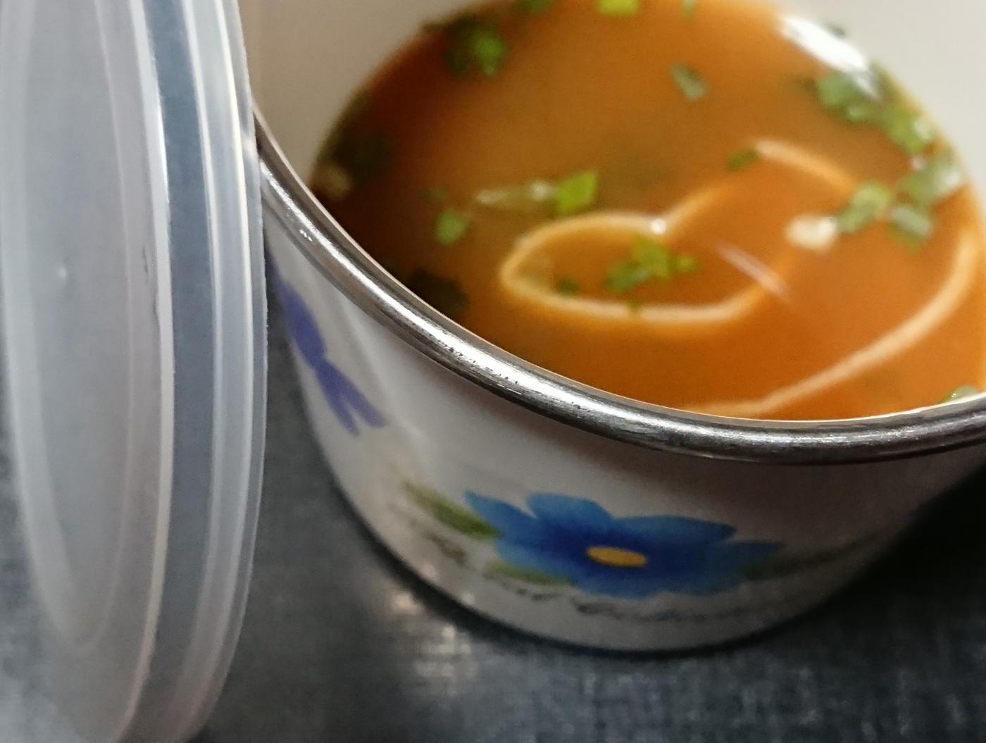 お弁当の人は、ラップに味噌と具まとめて、だしを容器に入れ、マグカップで持参すれば、会社などに、お湯あれば、注ぐだけ♪具(実)も、生の物でもいいですが、もっと簡単にしたい方は最近は、お味噌汁の具とし乾燥したのあるので、それと、まぜて、持参するだけ☆
