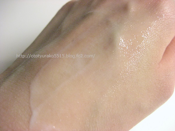 中身は透明に近い乳液のようなジェル。するするっとお肌にのびていき、いつのまにかお肌表面はさらっさら。三相乳化技術というものを採用しており、そのおかげでこのようなしっとり感をえられつつもサラサラとした使用感なのだとか。男性ってベタつくの嫌いですよね。脂とか汗とかも出やすい男性の肌でも割とさっぱりと、でもしっかり潤いを与えてケアができちゃうんです。