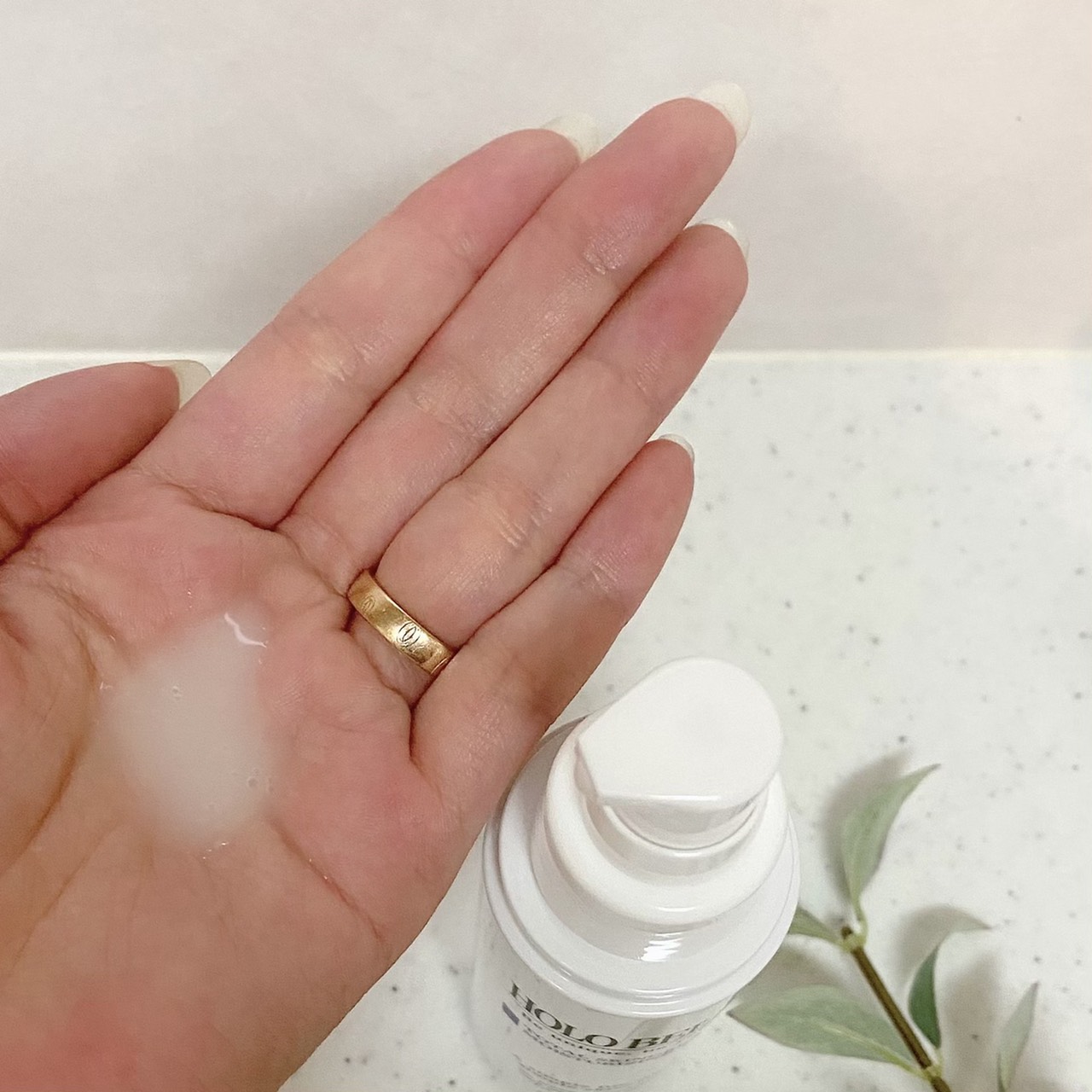 ☆三相乳化技術☆を活用しており、高保湿なのに全然ベタつかずサッラサラなつけ心地も、ベタベタが苦手な主人には合っていたようです♪