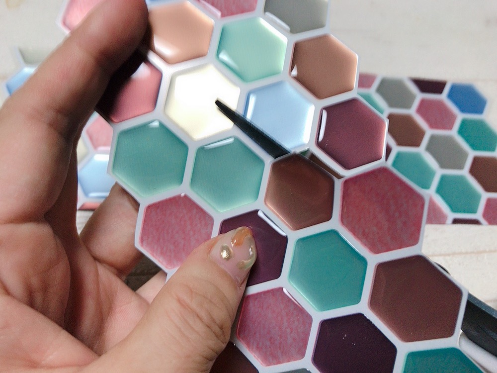 さらに、小さなシートを広い場所に連続して何枚も貼るとどうしても継ぎ目が気になりますが、ハイブ柄は辺が凹凸なので、そこを組み合わせるようにしたら隙間なく貼ることができました。