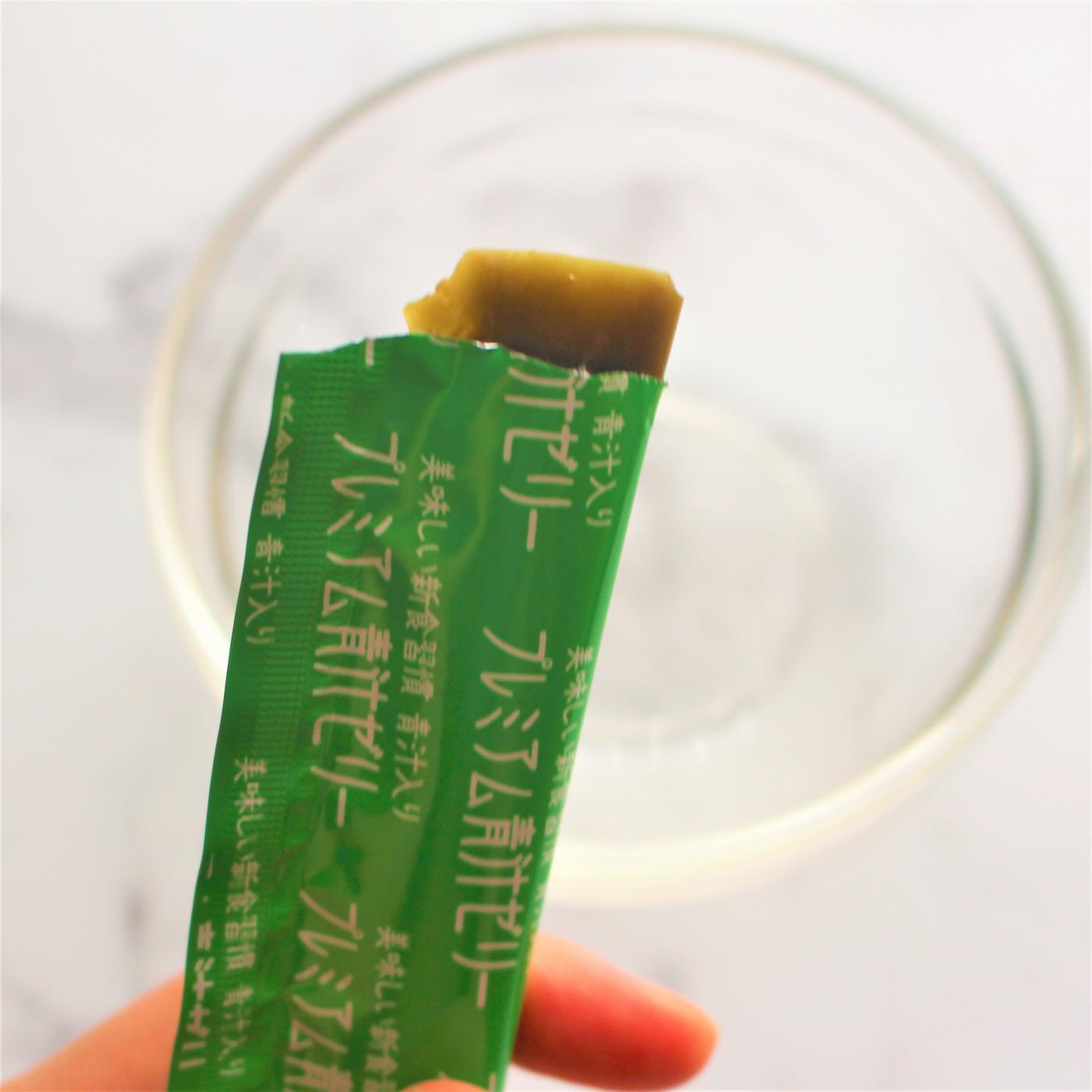 手軽に食べられることができる「プレミアム青汁ゼリー エクストラピーチ味」