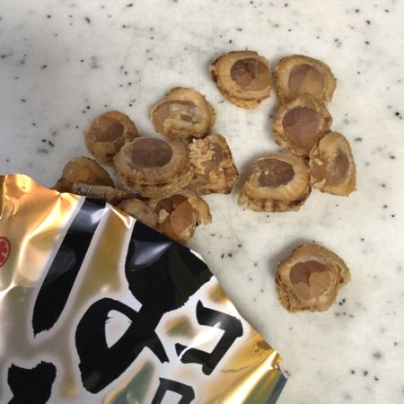 噴火湾で養殖されたベビーホタテを乾燥させ、ほんのり塩味のホタテ珍味に仕上げているそうです。