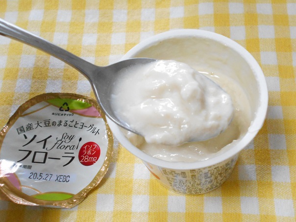 やっぱり大豆を使っているので普通のヨーグルトとは味が全然違い、どちらかというと豆の味が濃いお豆腐を食べているような感じです。