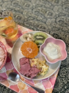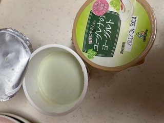 ヨーグルトはマスカット味なので薄い緑色をしています。このような色味のヨーグルトは見かけないので珍しさを感じました。