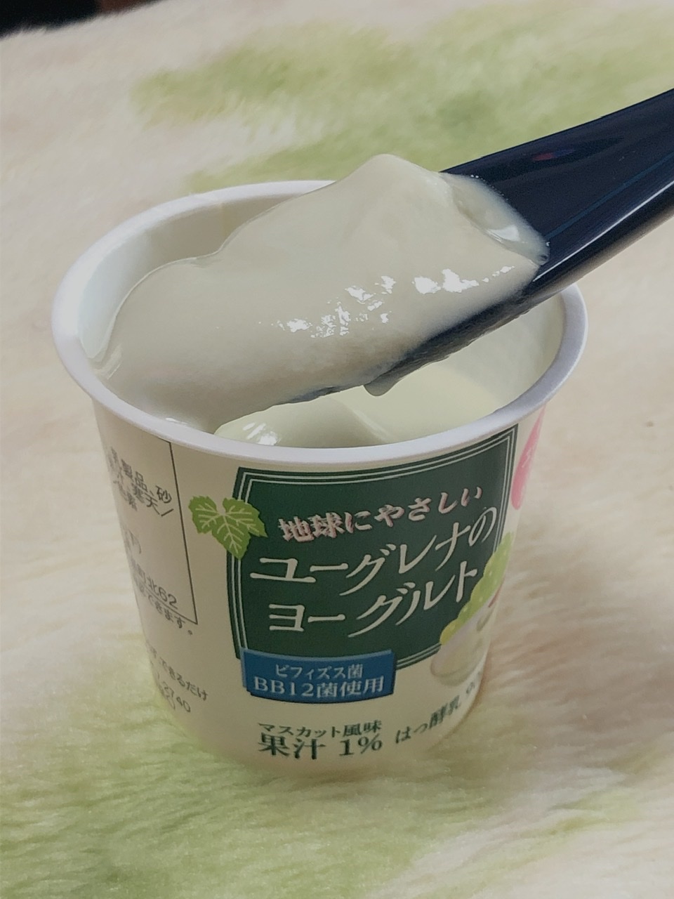 今回、ヨーグレナのヨーグルトを食べてみたのですが、マスカット味で本当に食べやすいヨーグルトでした。