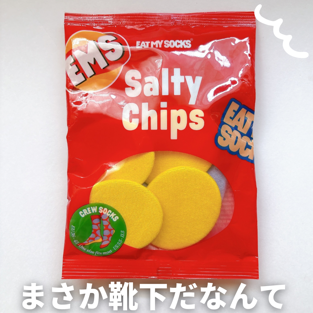 ポテトチップスの袋そっくりなパッケージに入った靴下です。