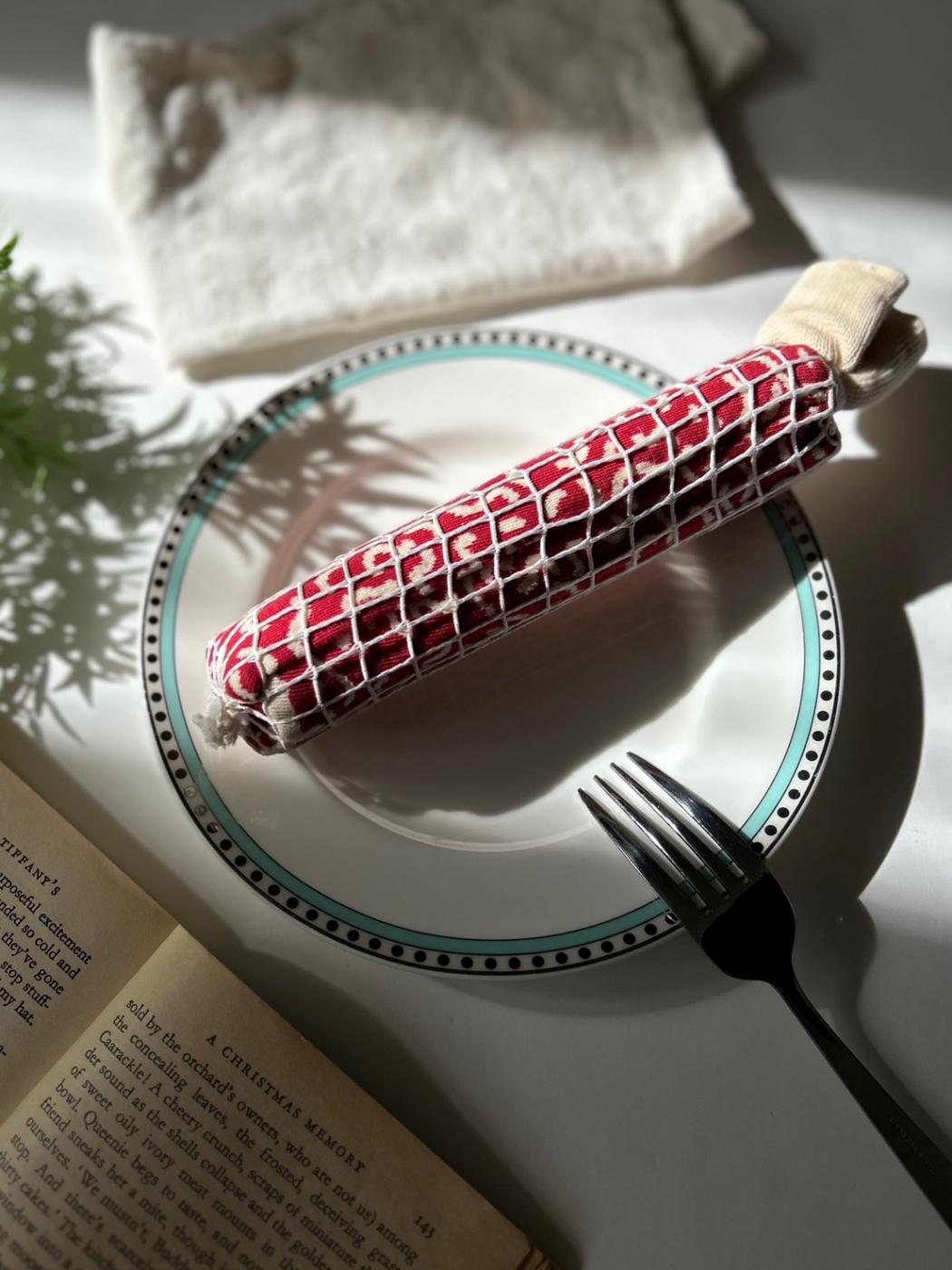 サラミみたいな赤と白の模様が楽しくてコーディネートのポイントになりそう!