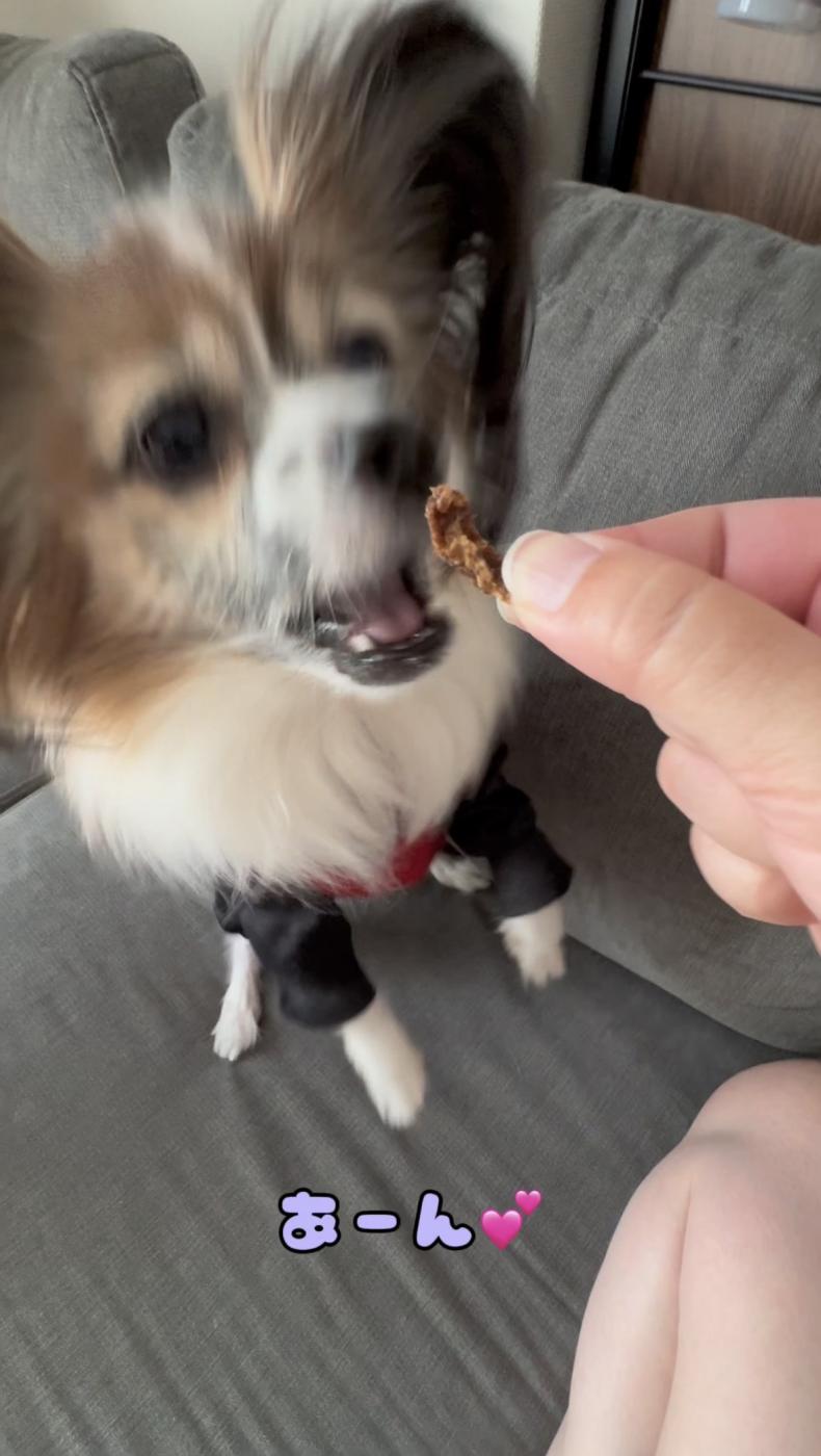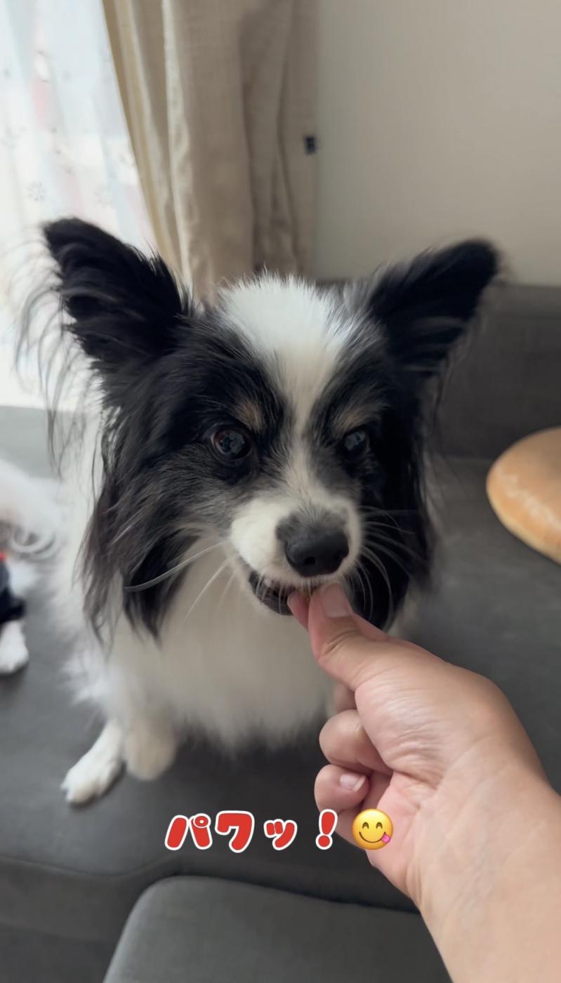 雷くんは「よし!」の合図が出るまでしっかり我慢して、合図と同時にパクッ♡