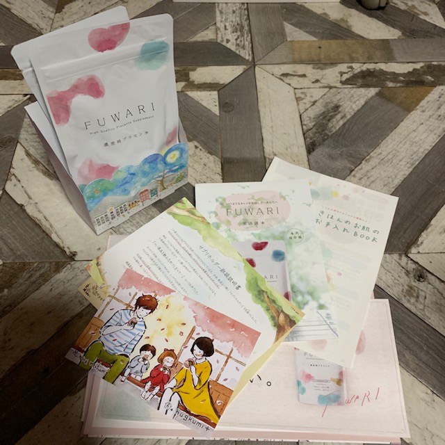 FUWARIはプラセンタのサプリメント。 持ち運びにも便利なチャック式の袋です。 優しい色合いのパッ...