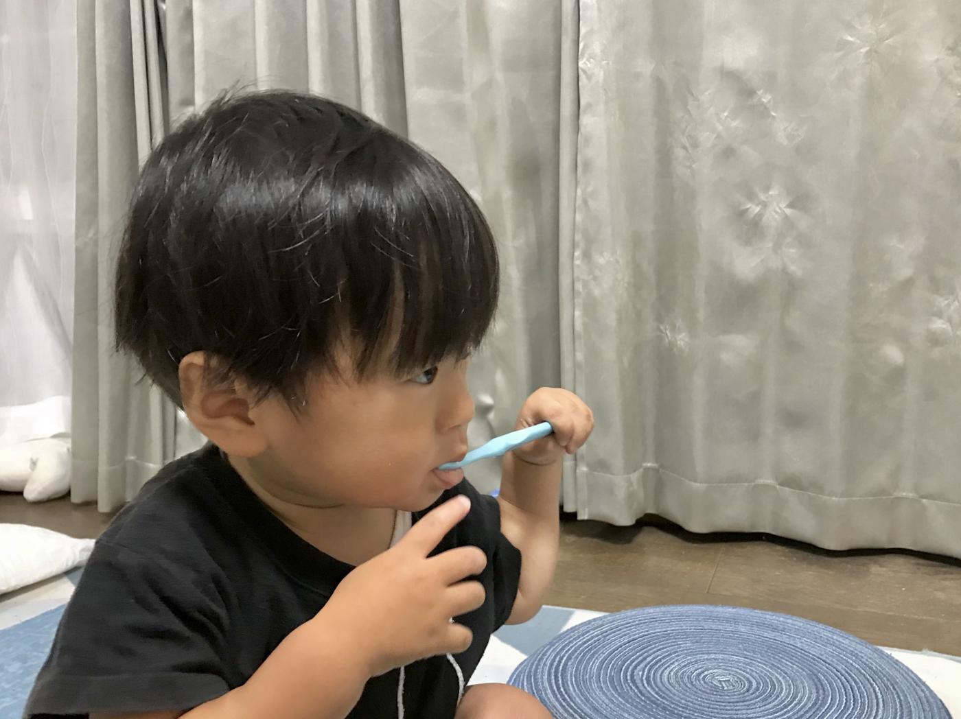 1歳9ヶ月の息子は元々歯磨き大好きでしたが最近ちょっと歯磨きから逃げていました。まだ、うがいができないので歯磨き粉は使っていませんでしたが、はっぴーすを付けて一度歯磨きすると、自分で歯ブラシを持って歯磨きするようになりました!