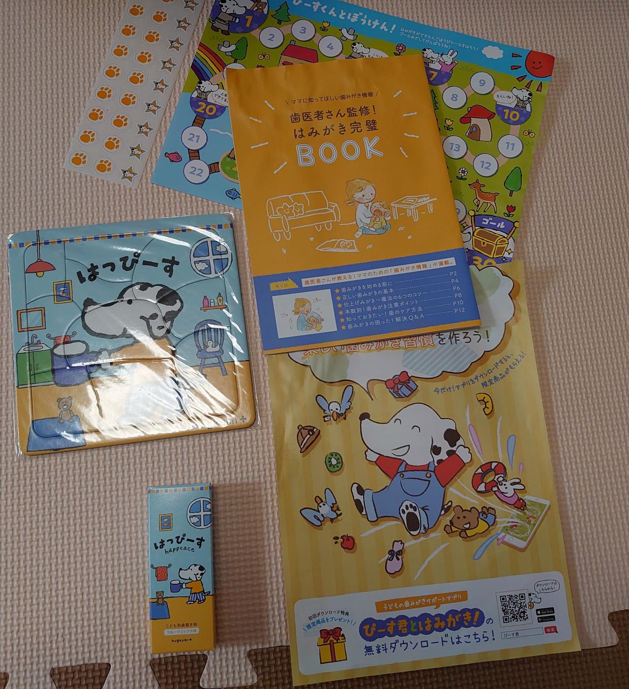 歯みがき粉のパッケージのキャラクターのパズルで遊んだり、歯磨きが終わったら貼るシールセットもついてます。