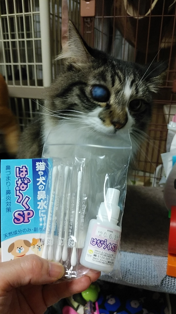 愛猫は赤ちゃんの頃の猫風邪の後遺症で瞬膜癒着しており、涙腺を瞬膜が塞いでいるためも有り、すぐ鼻づまりになります。