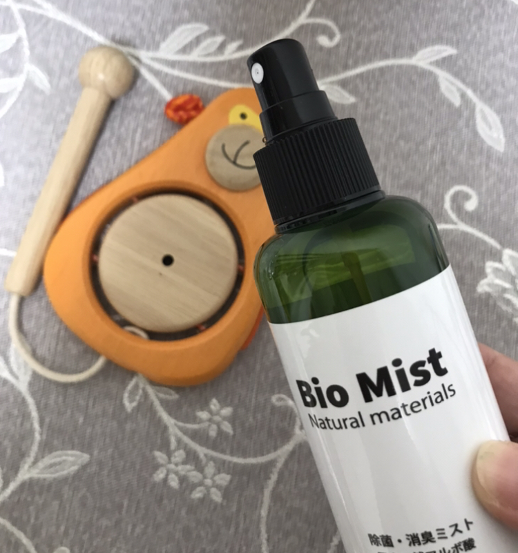 そこで除菌ができるものはいろいろ使っています。今回使ってみたビオミストは、バイオの力で除菌消臭をしてくれるものです。天然素材100%なので、赤ちゃんにも安心して使うことができます。