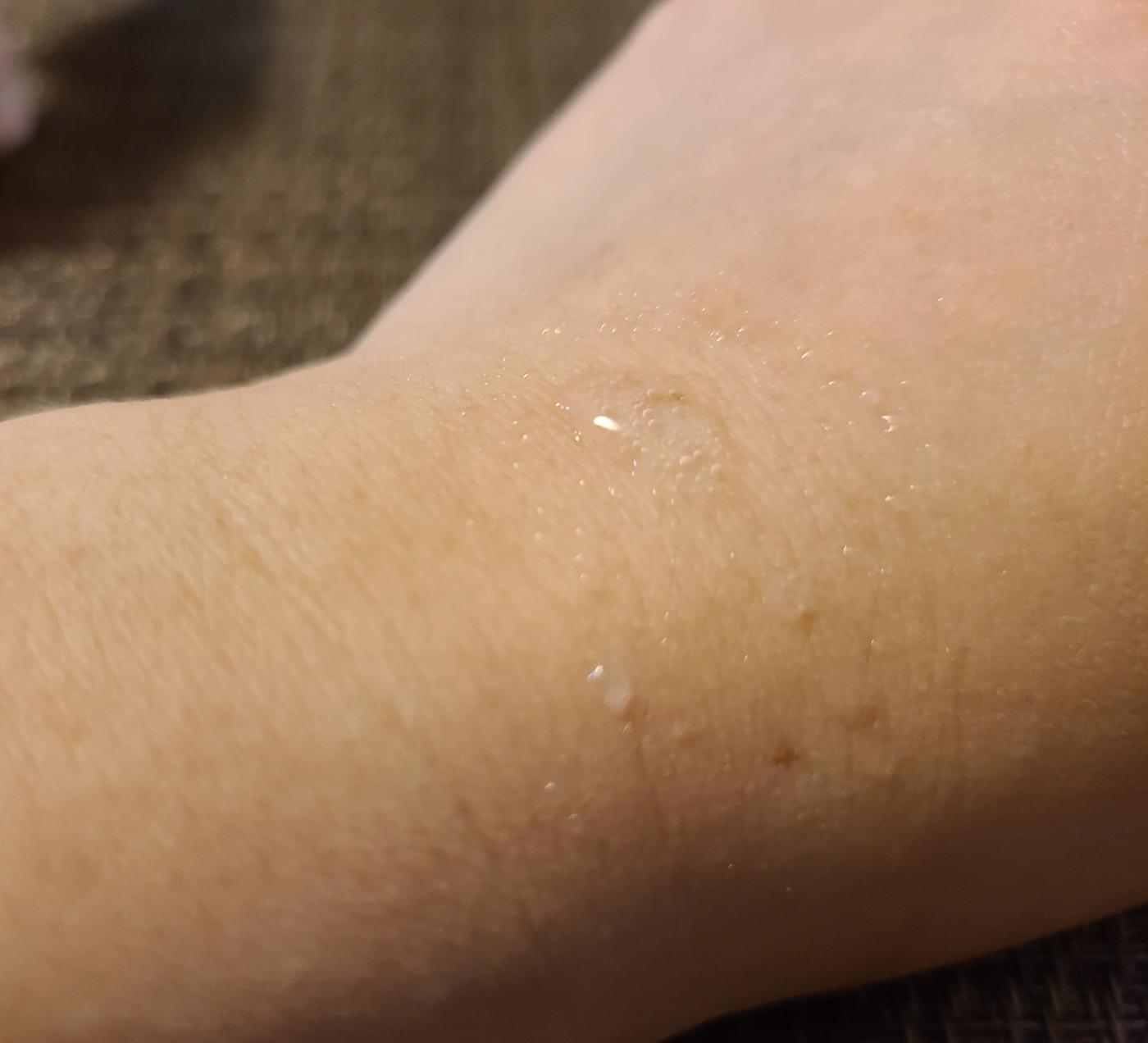 実際に腕にふりかけてみると、透明の液体で、ミントの香りがすごくして、リラックス効果を感じられました。