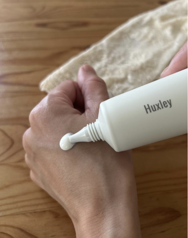 Huxley(ハクスリー)のウォータリーサンクリーム:ステイサンセーフのレビューです。 SPF50+, PA++++の日...