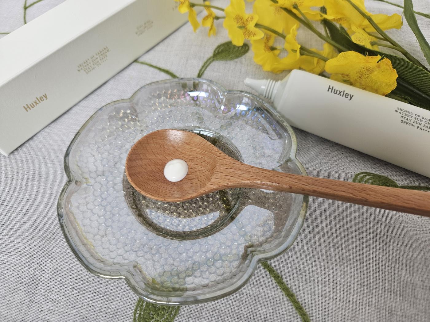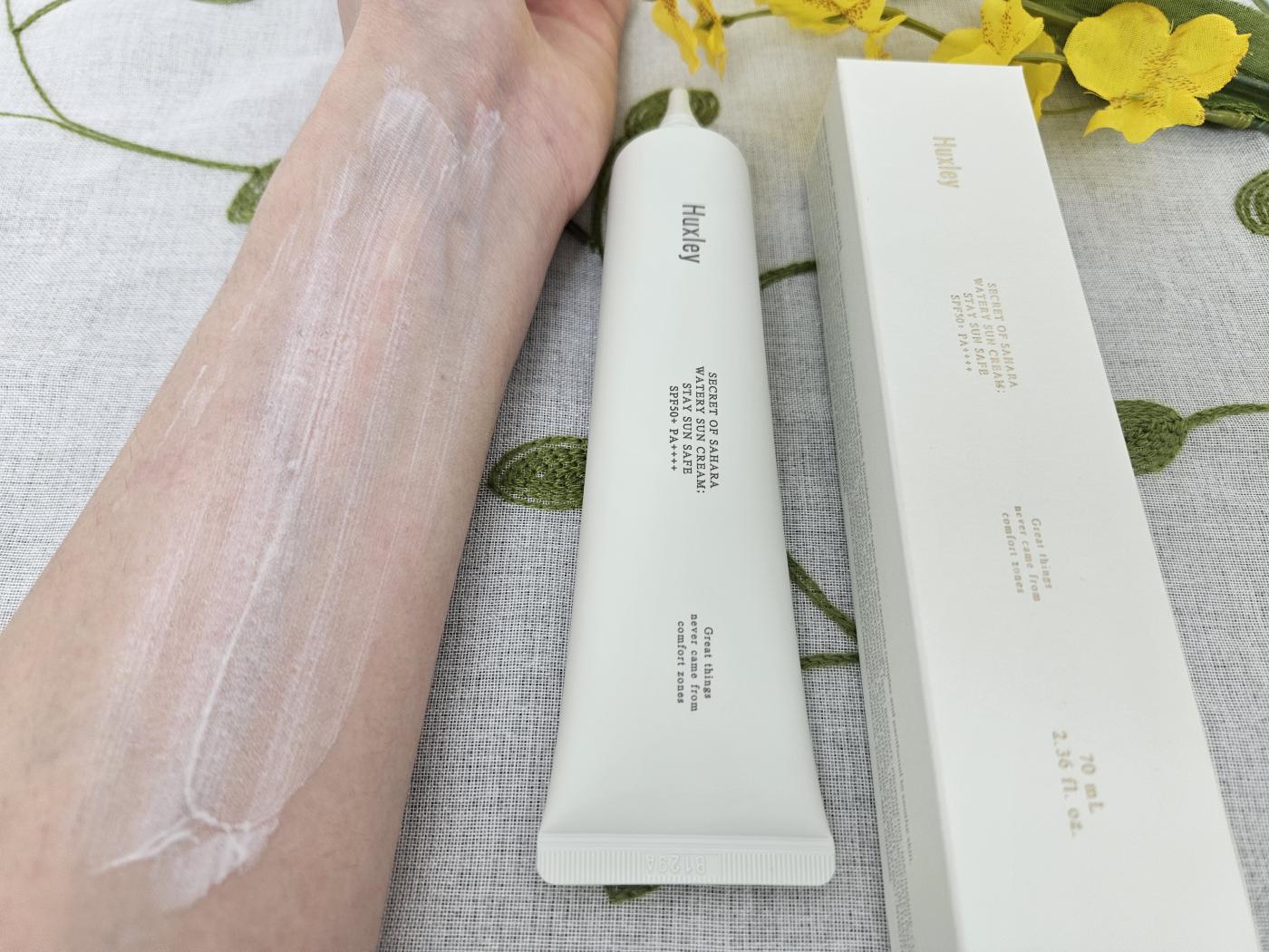 Huxley(ハクスリー)のウォータリーサンクリーム:ステイサンセーフのレビューです。 SPF50+, PA++++の日...
