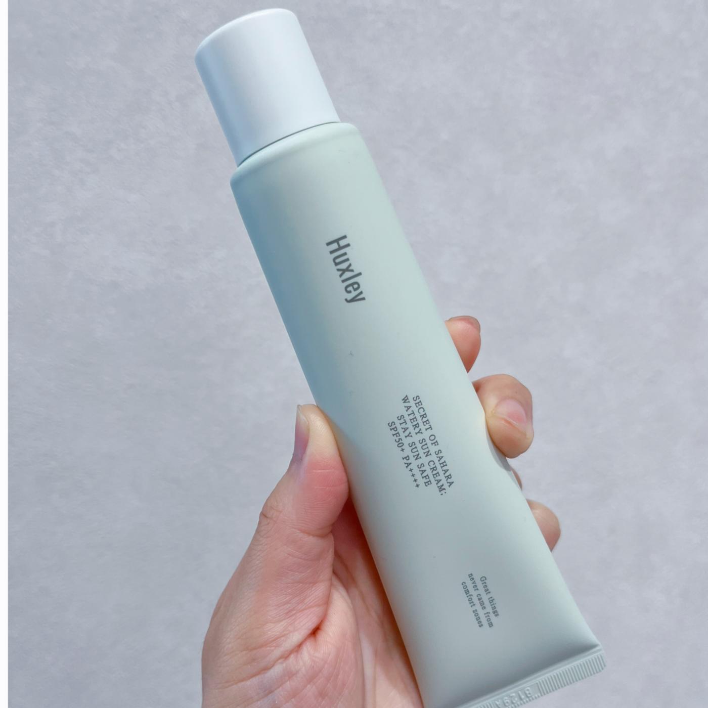 Huxley(ハクスリー)のウォータリーサンクリーム:ステイサンセーフのレビューです。 SPF50+, PA++++の日...