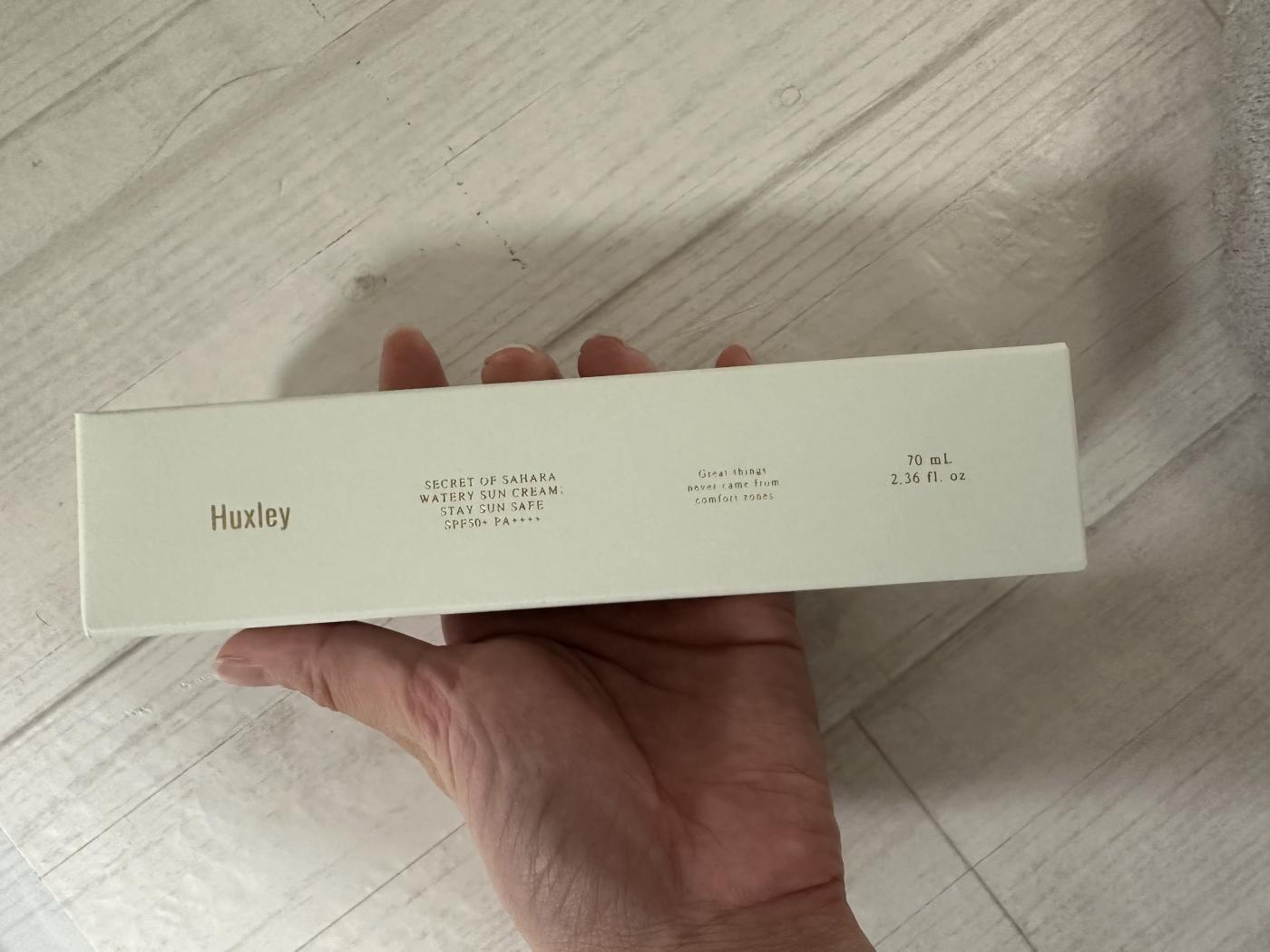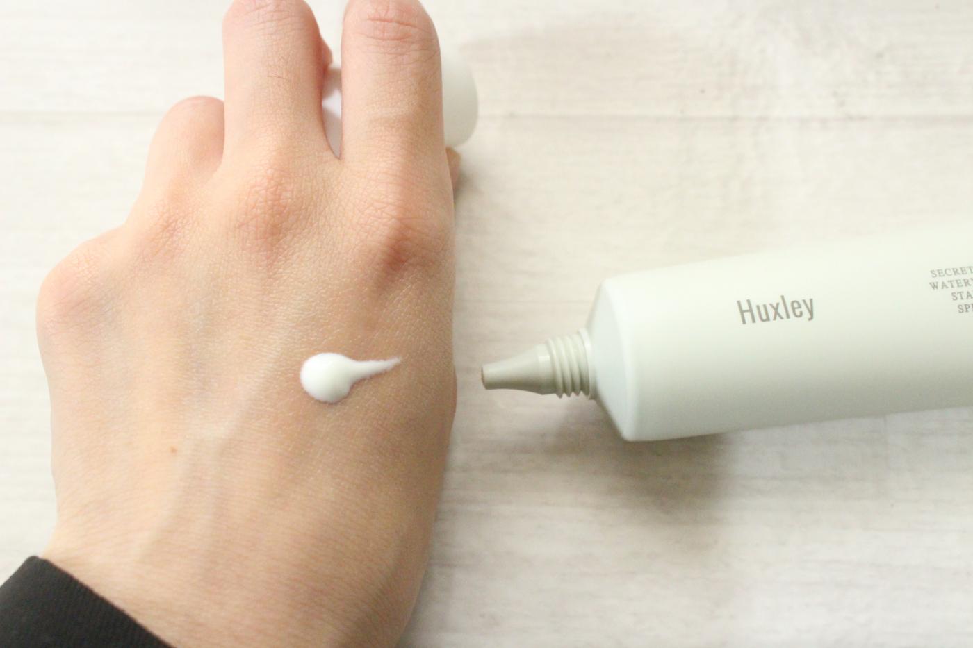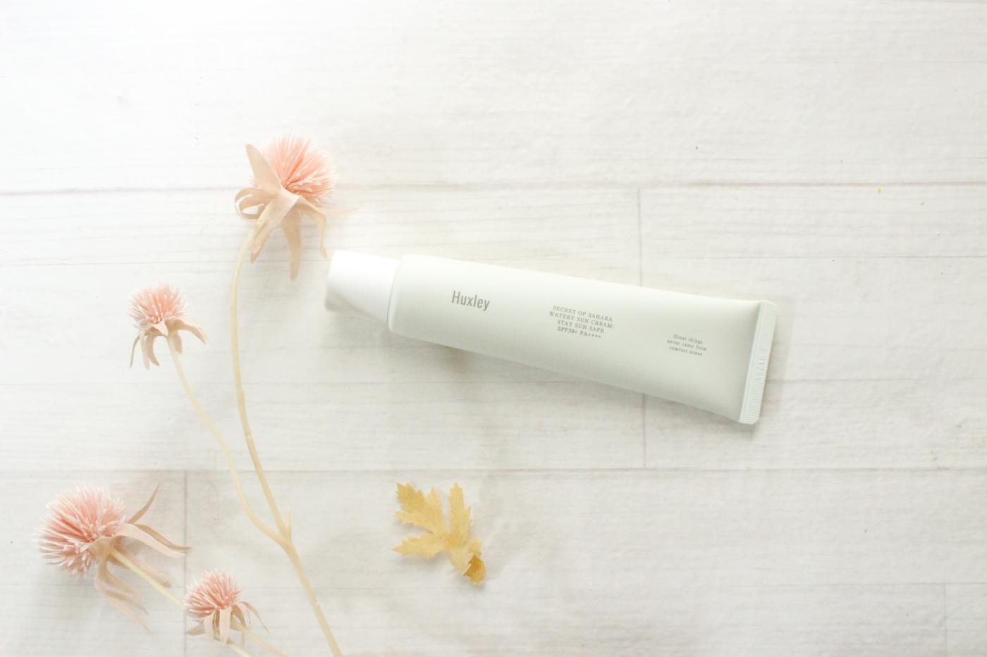 Huxley(ハクスリー)のウォータリーサンクリーム:ステイサンセーフのレビューです。 SPF50+, PA++++の日...