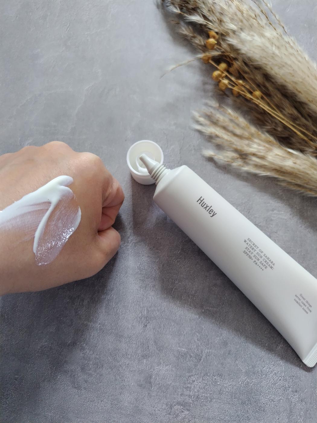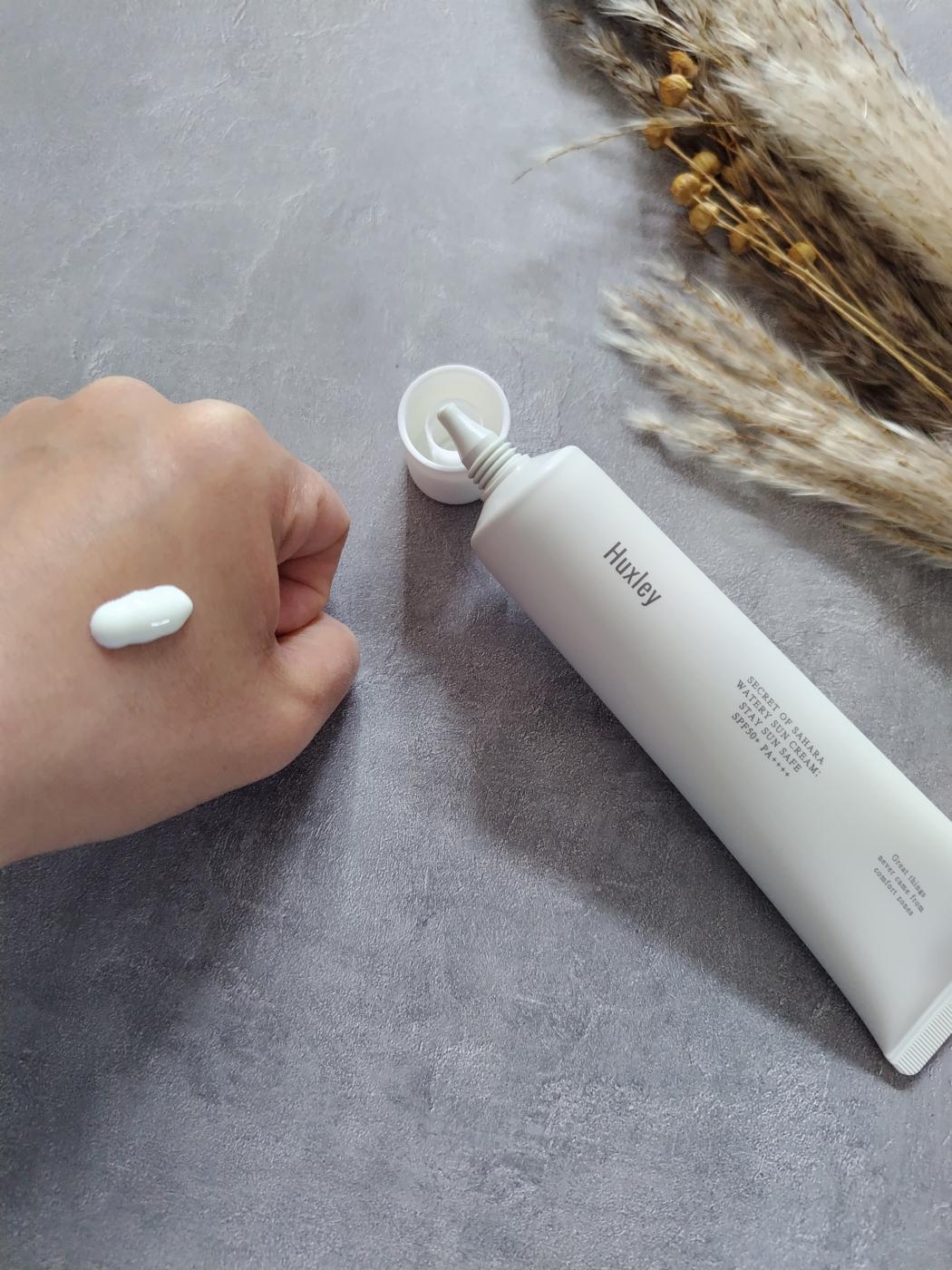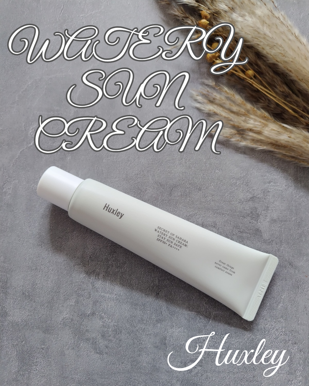 Huxley(ハクスリー)のウォータリーサンクリーム:ステイサンセーフのレビューです。 SPF50+, PA++++の日...