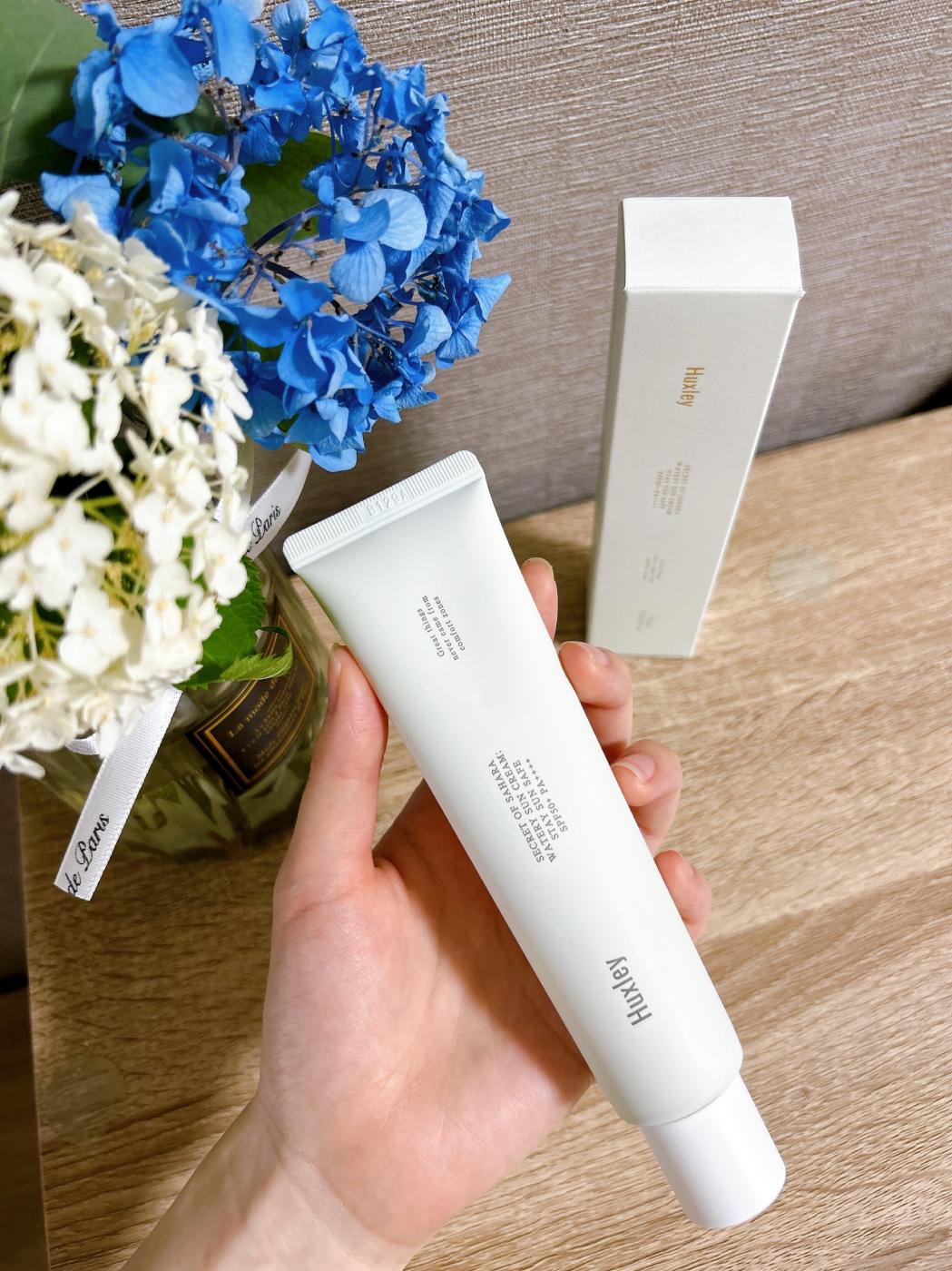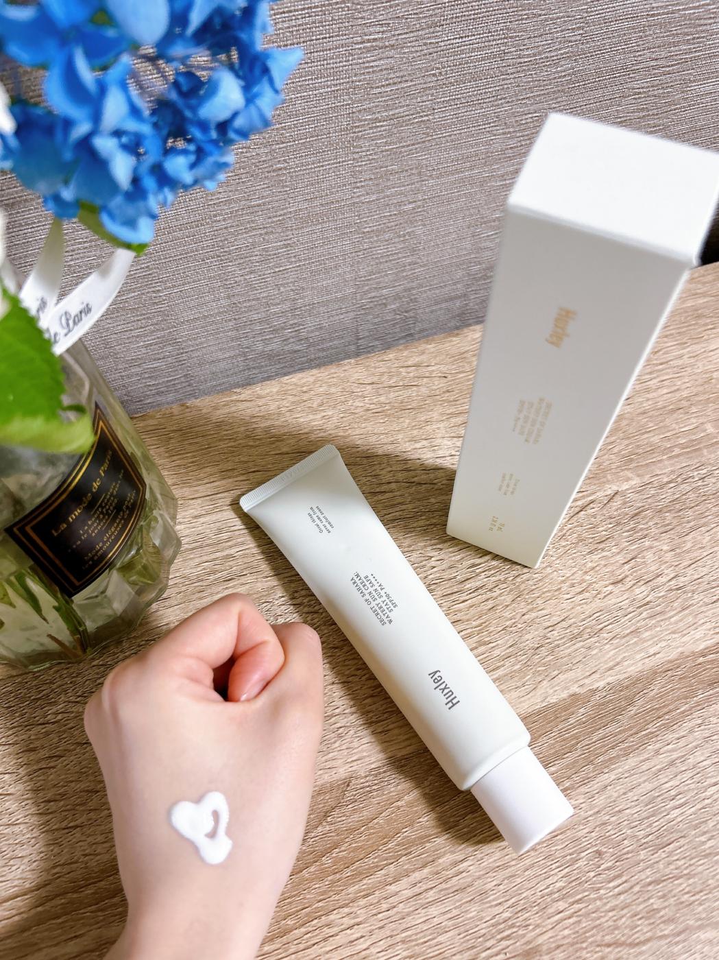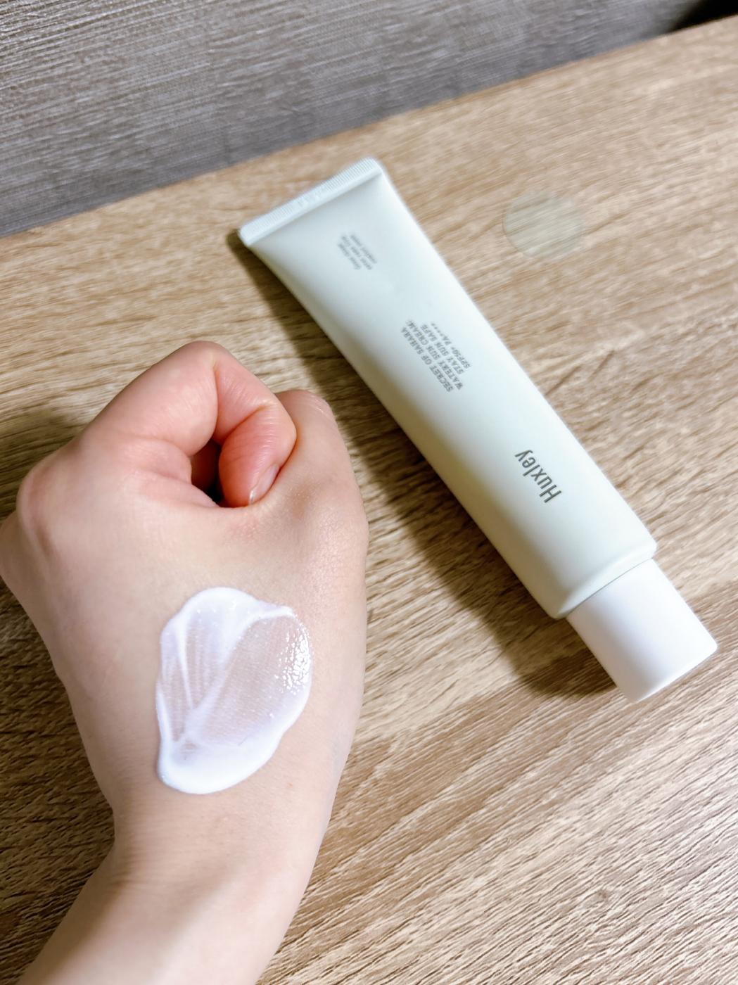 Huxley(ハクスリー)のウォータリーサンクリーム:ステイサンセーフのレビューです。 SPF50+, PA++++の日...