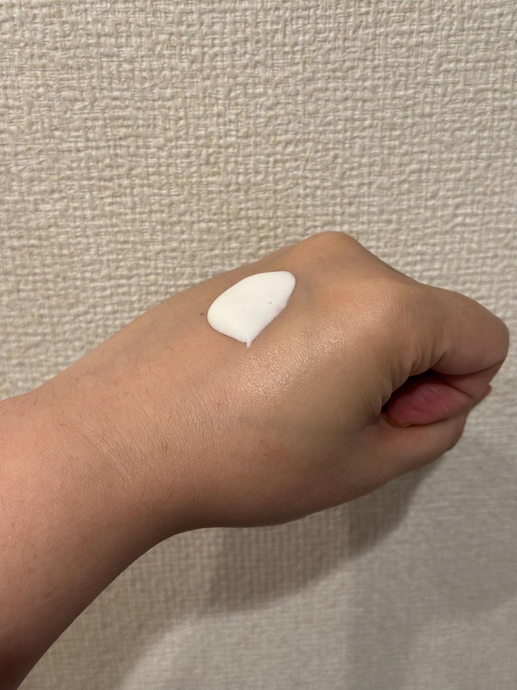 みずみずしいテクスチャーで、手に取った時は結構白いなぁと思いましたが、塗ってみると白くなることはなく、すんなりと肌に馴染んでいきました。