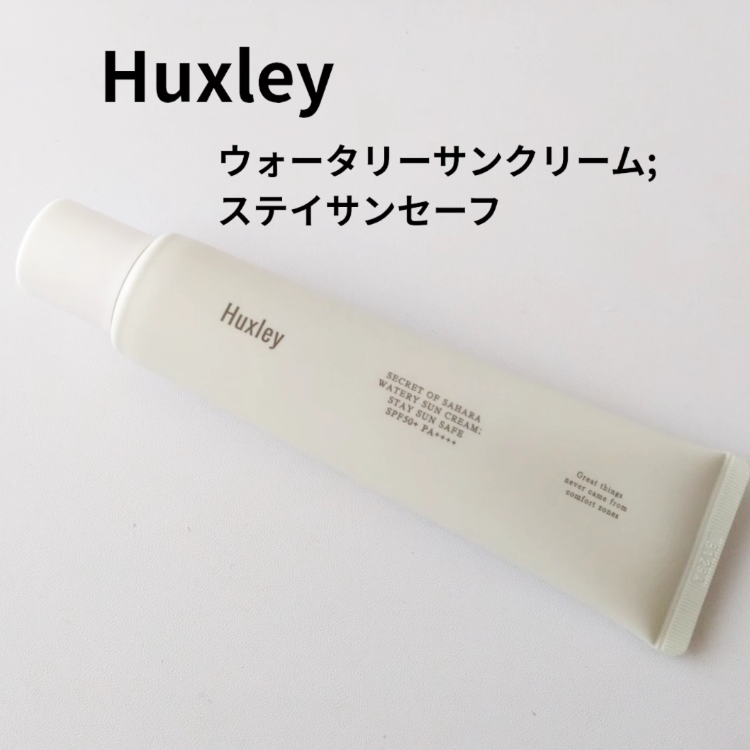 Huxley(ハクスリー)のウォータリーサンクリーム:ステイサンセーフのレビューです。 SPF50+, PA++++の日...