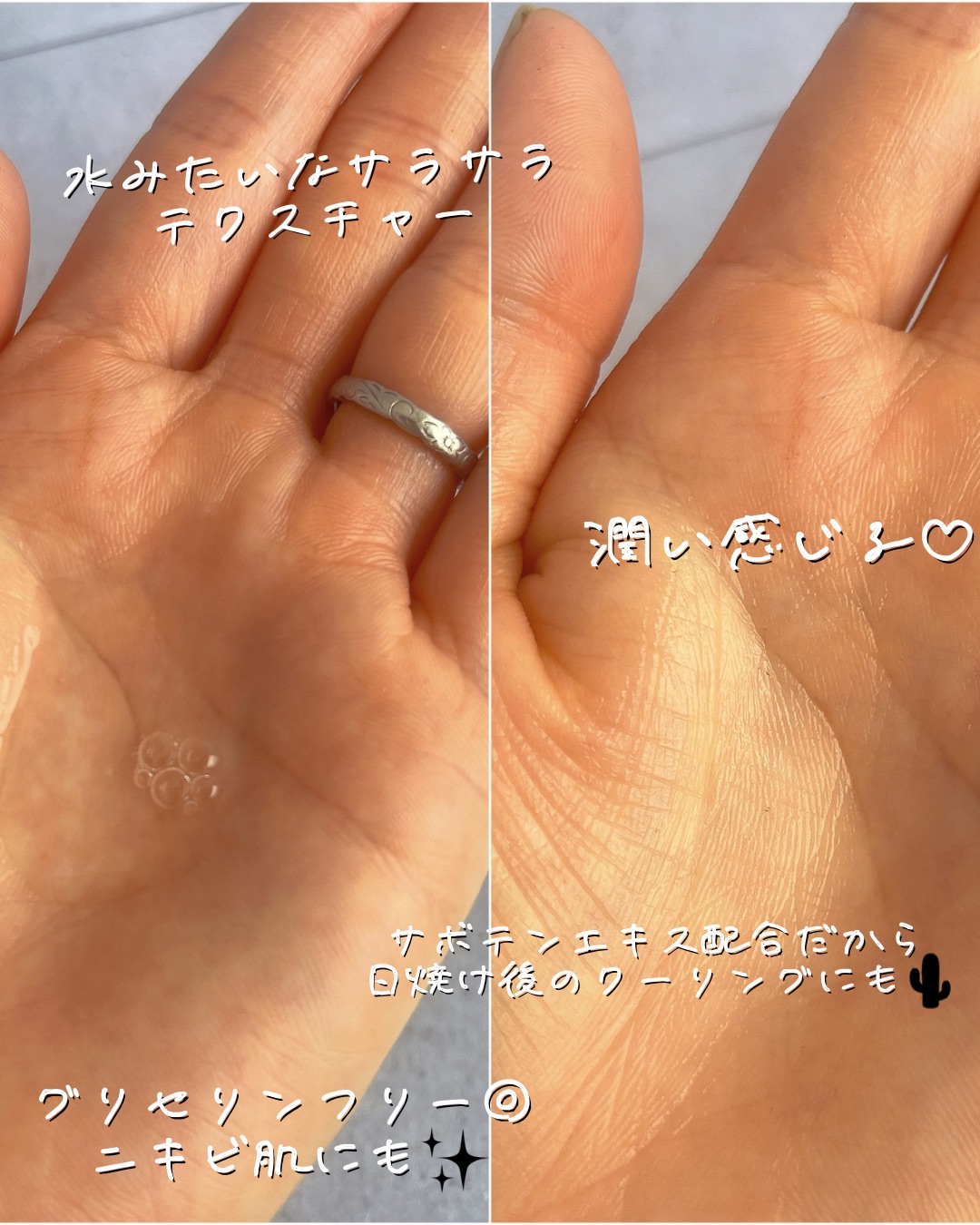 サボテンシードオイル配合だから日焼け後のクーリングにも良さそうで今の時期にぴったりのトナーだよ☀️