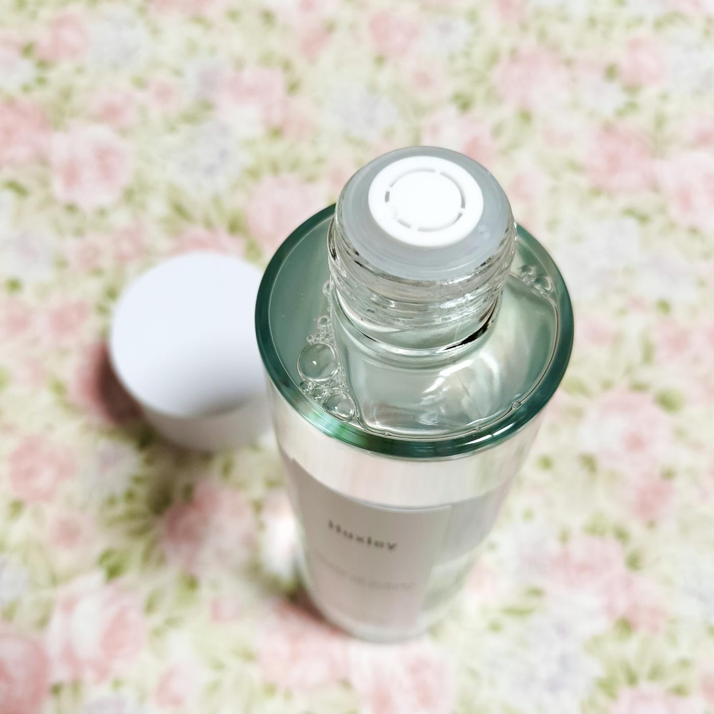 若干とろみのあるさらっとしたテクスチャーで、肌なじみもよく、少量でもしっとりとした使い心地でべたつき感はありません。