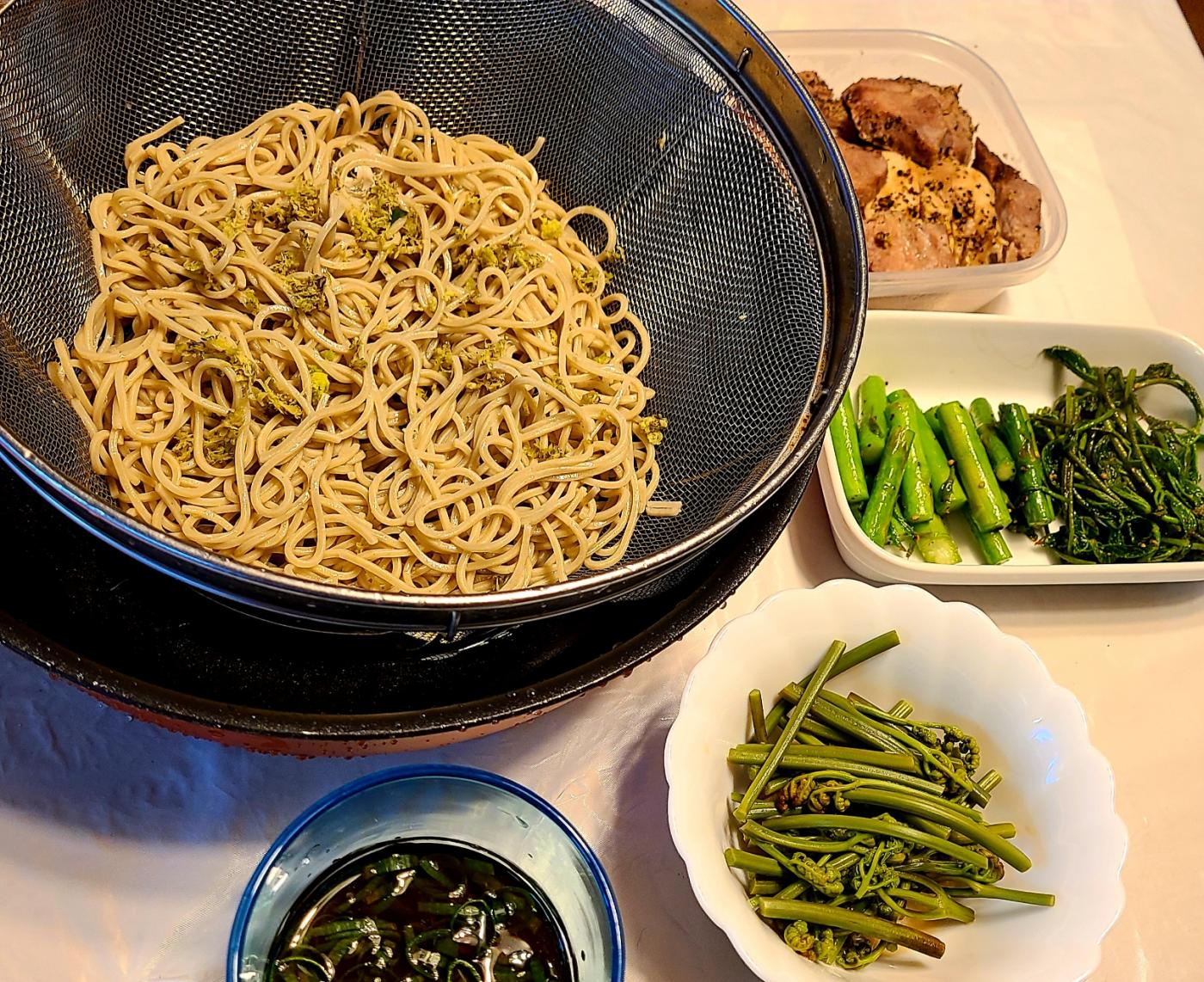 生そばなんで、沸騰したお湯で2分茹で、手早く氷水でしめて、ざるで食べました!!