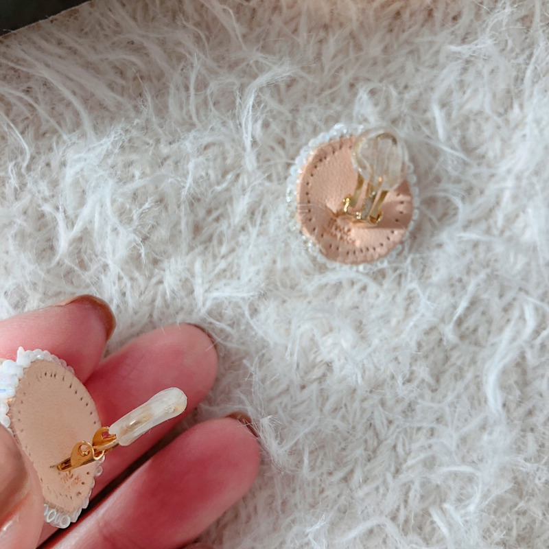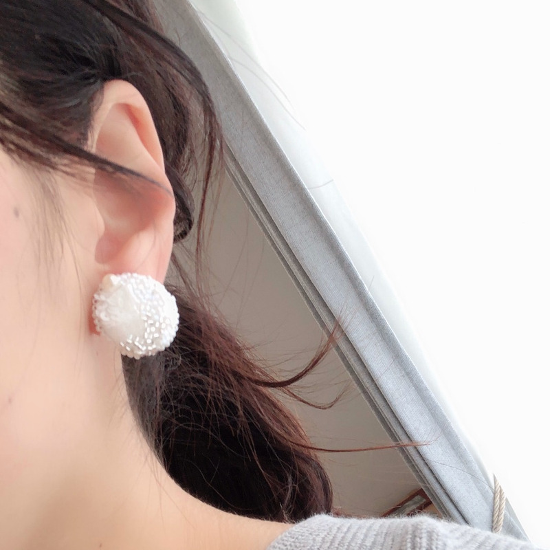 こちらは、オリジナルビーズ刺繍のイヤリング。