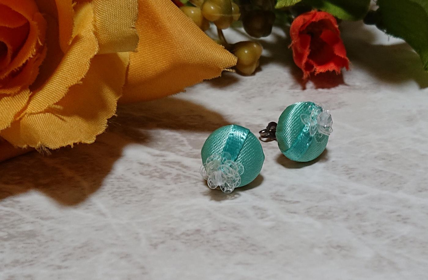こちらは、直系12㎜のコロンとまん丸のとっても可愛らしいピアス。 小さなスパンコールの刺繍はミント...