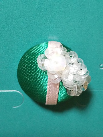 小ぶりで可愛らしいデザインのブローチですが、色が鮮やかなグリーンなので存在感がありますね。