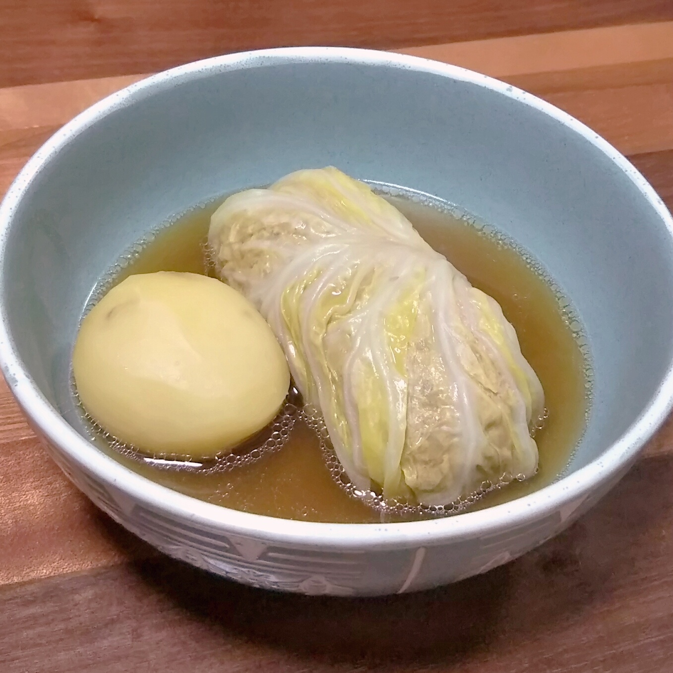 お次は二番出汁を使ってロールキャベツと新じゃがを煮てみました。